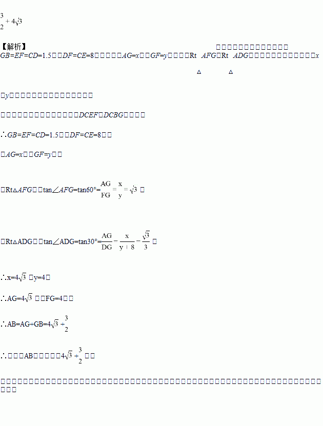 如图,小红同学用仪器测量一棵大树AB的高度,在C处测得∠ADG?30?,在E处测得∠AFG?60?,CE?8米,仪器高度CD?1.5米,求这棵树AB的高度