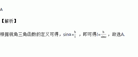 如图,某游乐场一山顶滑梯的高为h,滑梯的坡角为α,那么滑梯长l为( )