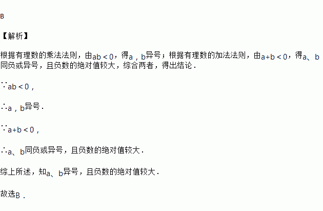 对于有理数a、b,如果ab<0,a+b<0.则下列各式可能成立的是( )