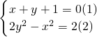 将(3)代入(2)得:2y2-(-y-1)2=2