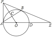 如图,PA与⊙O相切于点A,过点A作AB⊥OP,垂足为C,交⊙O于点B.连接PB,AO,并延长AO交⊙O于点D,与PB的延长线交于点E.