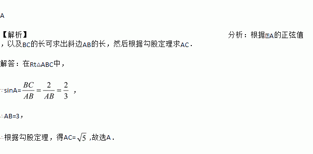 在△ABC中,∠C=90°,BC=2,sinA=