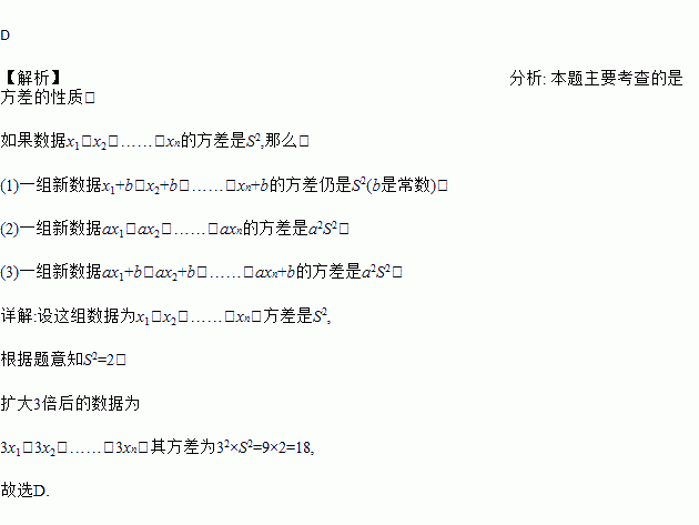 一组数据的方差是2,将这组数据都扩大3倍,则所得一组新数据的方差是( )