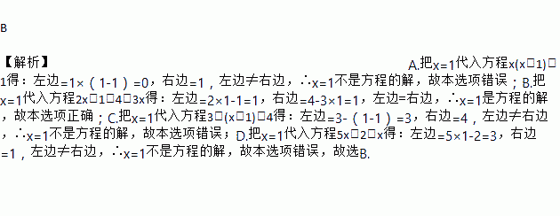 下列方程中,解是x=1的方程是( )
