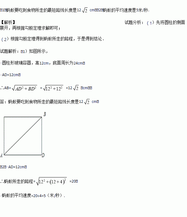 (2)若蚂蚁刚出发时发现B处的蜂蜜正以每秒钟1cm沿杯内壁下滑,4秒钟后蚂蚁吃到了蜂蜜,求蚂蚁的平均速度至少是多少?