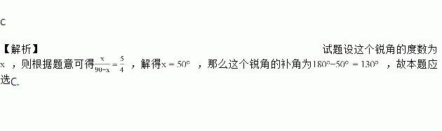 一个锐角和它的余角之比是5∶4,那么这个锐角的补角的度数是( )