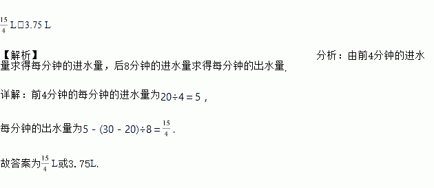 一个有进水管和出水管的容器,从某时刻开始4 min内只进水不出水,在随后的8 min内既进水又出水,每分钟的进水量和出水量是两个常数,容器内的水量y(L)与时间x(min)之间的关系如图所示,则每分钟的出水量为________________