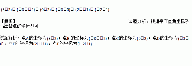 在如图所示的平面直角坐标系中,写出点A,B,C,D,E,F的坐标.