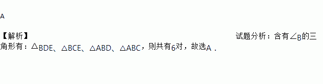 若有一个公共角的两个三角形称为一对“共角三角形”,则图中以∠B为公共角的“共角三角形”有( )对.
