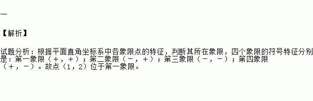 在平面直角坐标系中,点(1,2)位于第 象限.
