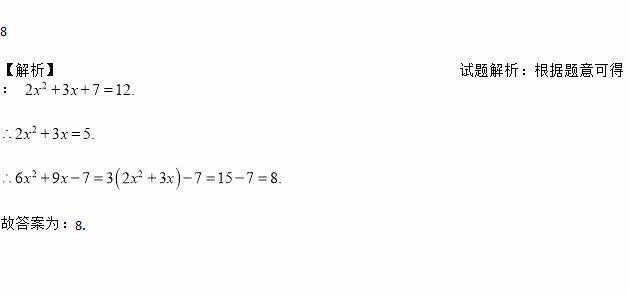 若多项式2x2+3x+7的值为12,则6x2+9x-7=_____________;