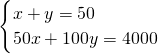 分析:设50元面额的x张,100元面额的y张,根据总共50张,面值为4000元,可得出方程组,解出即可.