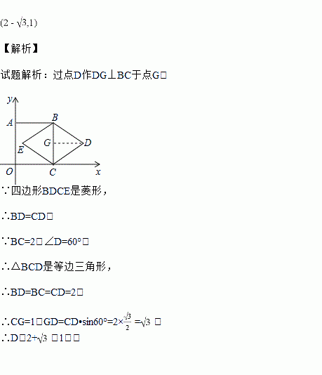 如图,正方形ABCO的顶点C、A分别在x轴、y轴上,BC是菱形BDCE的对角线,若,,则点E的坐标是______.