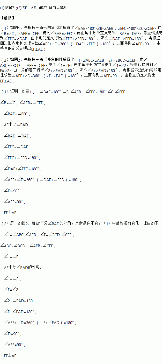 (2)如图20②,若AE平分四边形ABCD的外角,其余条件不变,则(1)中的结论是否仍然成立?并说明理由.