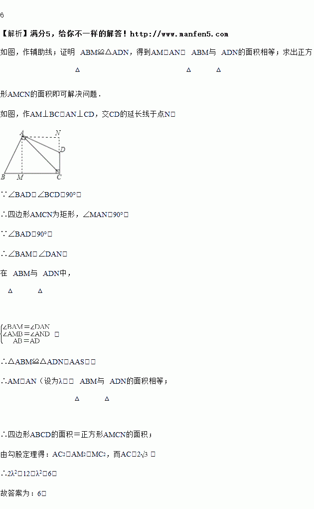 如图,在四边形中,,,如果,则四边形的面积为________.