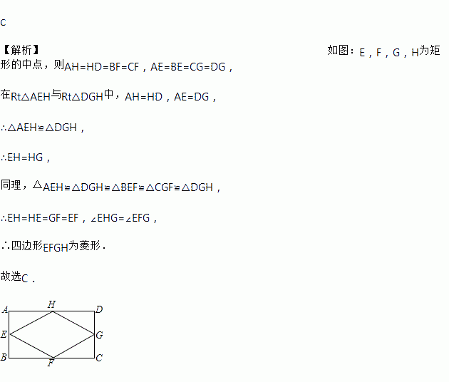 顺次连接矩形ABCD各边中点得到四边形EFGH,它的形状是( )