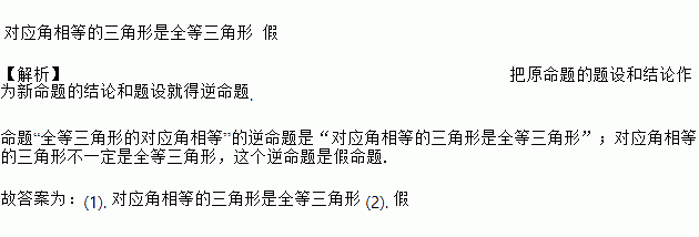 命题“全等三角形的对应角相等”的逆命题是_____________.这个逆命题是_______(填“真”或“假”)命题.