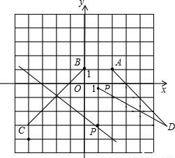 【解析】如图,很容易判断四边形ABCD是等腰梯形,那么点P一定在两底的垂直平分线上.如果点P也在两腰的中垂线上,两腰的特殊性就在于它与坐标轴的夹角为45°,并且两腰的中点恰在格点上,从图形中很容易看出点P的坐标为(﹣1,﹣4),设点P(1,y),显然只有DA=DP的可能了,由两点间的距离公式,得
