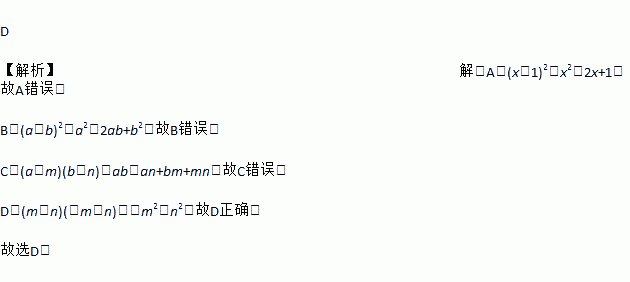 A. (x-1)2=x2-2x-1 B. (a-b)2=a2-b2