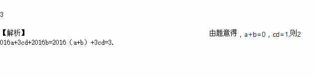 若a.b互为相反数,c.d互为倒数,则2016a+3cd+2016b=_________;