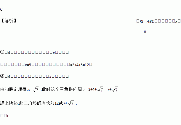 已知直角三角形两边的长为3和4,则此三角形的周长为( )