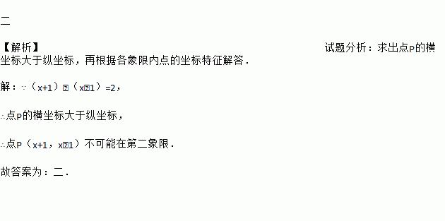 点P(x+1,x﹣1)不可能在第 象限.