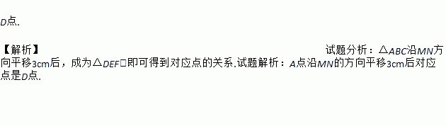 如图,△ABC沿MN方向平移3cm后,成为△DEF那么点A的对应点是哪个点?![]()