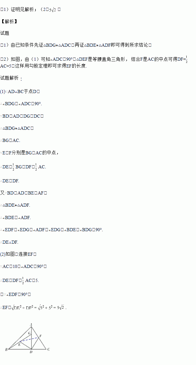 如图,在△ABC中,AD⊥BC于D,BD=AD,DG=DC,E,F分别是BG,AC的中点.