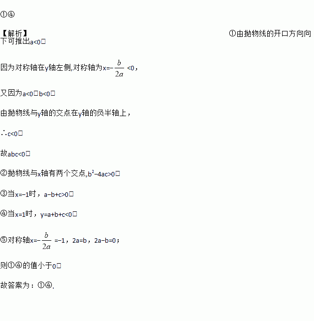 y=ax2+bx+c(a≠0)的图象如下图所示,那么下面五个代数式:①abc,②b2-4ac,③a-b+c,④a+b+c,⑤ 2a-b中,值小于0的有________.(所有成立的序号)