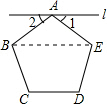 分析:由已知l∥CD,可得出∠1=∠2,又由正五边形ABCDE得∠BAE=540°÷5=108°,从而求出∠1的度数.