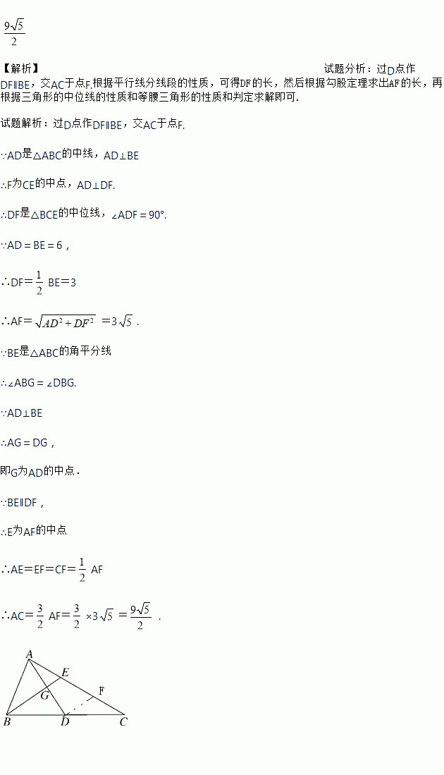 如图,AD,BE分别是△ABC的中线和角平分线,AD⊥BE于点G,AD=BE=6,求AC的长.