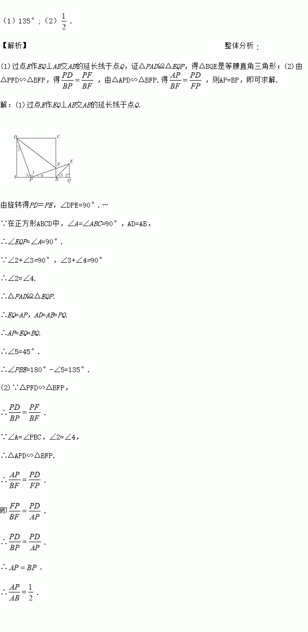 如图,点P是正方形ABCD边AB上一点(点P不与点A,B重合),连接PD,将线段PD绕点P顺时针方向旋转90°得到线段PE,PE交边BC于点F,连接BE,DF.