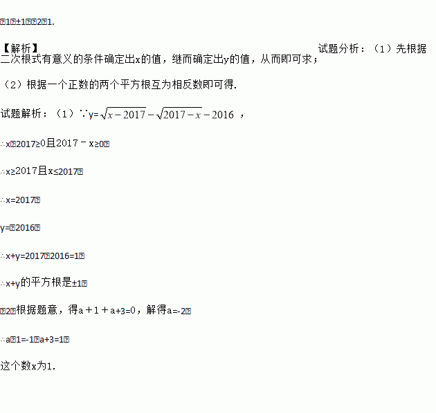 (2)已知一个正数x的两个平方根分别是a+1和a+3,求这个数x.