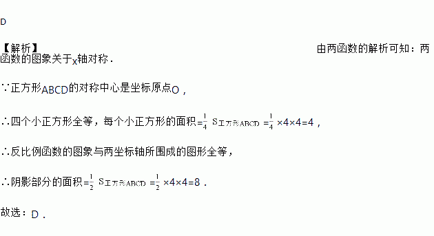 的图象均与正方形ABCD的边相交,如图,则图中的阴影部分的面积是( )