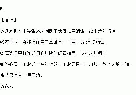 ④外心在三角形的一条边上的三角形是直角三角形.