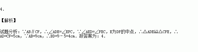 如图,AB∥CF,E为DF的中点,若AB=9cm,CF=5cm,则BD= cm.
