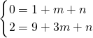 解得m=-3、n=2,