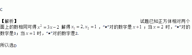 如图是一个正方体的表面展开图,已知正方体相对两个面上的数相同,且不相对两个面上的数值不相同,则“★”面上的数为( )