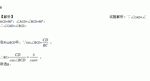 如图,电线杆CD的高度为h,两根拉线AC与BC互相垂直、D、B在同一条直线上,设,那么拉线BC的长度为