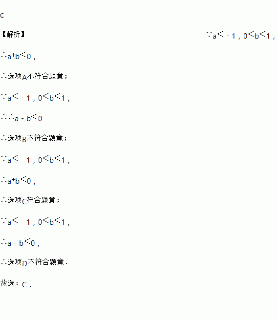 A. a+b>0 B. a﹣b=0 C. a+b<0 D. a﹣b>0