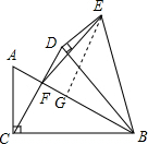 分析 过E作EG⊥AB于G,连接AE,解直角三角形得到∠ABC=30°,根据直角三角形的性质得到AB=4,由等边三角形的性质得到∠CBD=∠DCB=60°,BC=BD,于是得到BF=$\frac{\sqrt{3}}{2}$BC=3,根据旋转的性质得到BE=AB=4,∠EBD=30°,根据勾股定理即可得到结论.