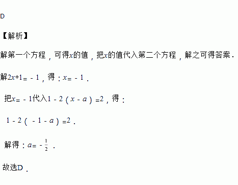 若方程2x+1=﹣1的解是关于x的方程1﹣2(x﹣a)=2的解,则a的值为( )
