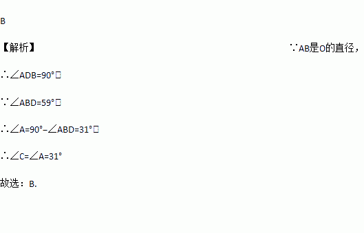 如图,AB是⊙O的直径,CD是⊙O的弦,∠ABD=59°,则∠C等于( )