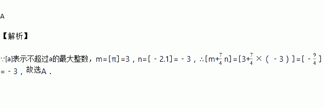 若规定[a]表示不超过a的最大整数,例如[4.3]=4,若m=[π],n=[﹣2.1],则在此规定下[m+