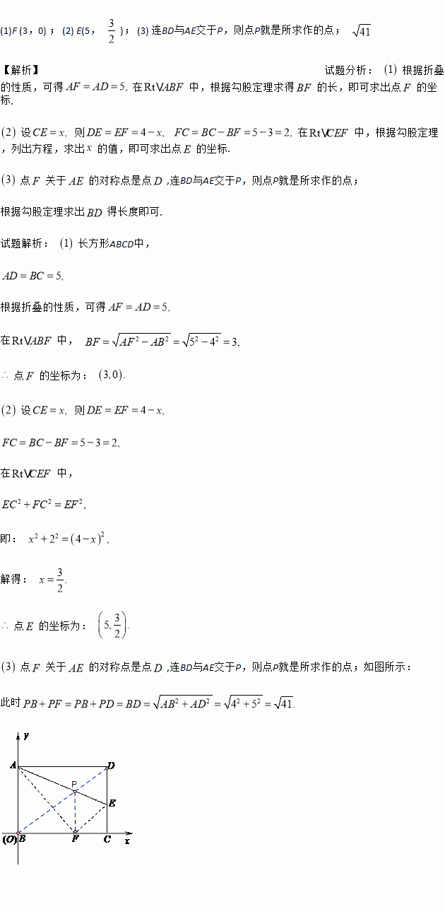 如图,在长方形ABCD中,AB=4,BC=5,点E在边CD上,以B为坐标原点,BA所在直线为y轴,BC所在直线为x轴,建立平面直角坐标系,A(0,4).以AE所在直线为折痕折叠长方形ABCD,点D恰好落在BC边上的F点.