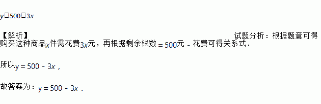 小华用500元去购买单价为3元的一种商品,剩余的钱数y(元)与购买这种商品的件数x(件)之间的关系是__________.