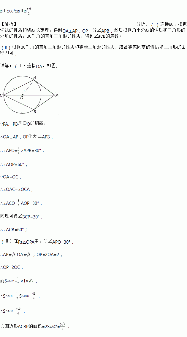 (Ⅱ)若⊙O半径为1,求四边形ACBP的面积.
