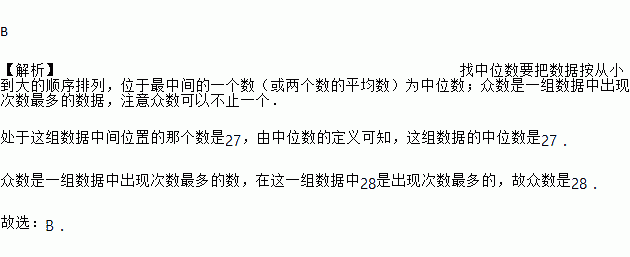 A. 26.5,27 B. 27,28 C. 27,27 D. 27.5,28