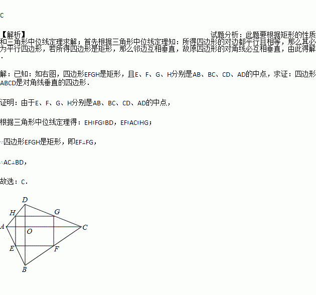 若顺次连接四边形ABCD各边的中点所得四边形是矩形,则四边形ABCD一定是( )