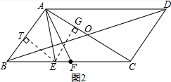 (2)如图2,若AE平分∠BAC,点F为BC中点,且点F保持在点E的右边,求线段BC的变化范围.